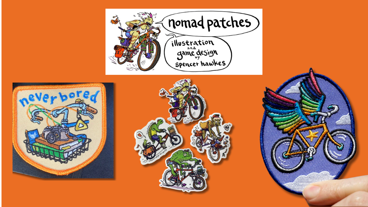 Nomad Patches illustrates and designs bike-themed stickers and patches. @nomadpatches on Instagram / website