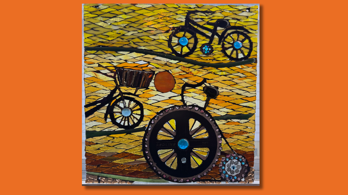 We are lucky to have these three accomplished, local stained glass artists join us. They’ll share unique, bike-inspired pieces from their collection and are making several works just for BikeCraft! Tamara Goldsmith transforms bike parts into adornment for the home, tree and body. She’s turning bicycle cogs and wheels into sun catchers made just BikeCraft! @magichourglass on Instagram / website. Kathie Wise is with Marvelous Mosaics (Instagram / website) and created the stunning piece above. We’ll also have work from Kathie Wise. Stay tuned for photos as they complete their pieces!