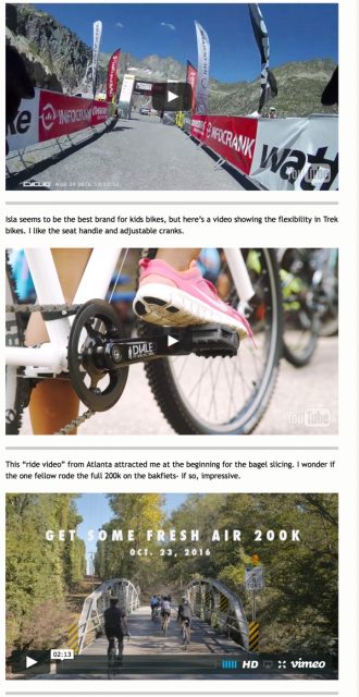 This “ride video” from Atlanta attracted me at the beginning for the bagel slicing. I wonder if the one fellow rode the full 200k on the bakfiets- if so, impressive.