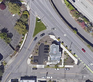 When I shared a video about this intersection last week (above), a lot of folks chimed in to say how terrible it is. Set on a diagonal, and with four-to-five wide lines in all directions, the widest section of SW 6th and Broadway is about 165 feet from curb-to-curb. Adding to the stress is that it’s adjacent to I-405 freeway onramps. And if you make it the 104-feet across Broadway, you enter a narrow, unprotected bike lane on the freeway overpass. Then, just as you begin to enter downtown and begin to breathe easy, the bike lane ends just before SW Jackson. Then, as you try to decide what to do, you realize there’s a freeway off-ramp lane on your right and you’re dumped in the middle of the street sharing lanes with drivers. And those drivers on your right? Many of them want to merge across two lanes (including the one you’re in) to go left at SW College. It’s a complete “F-you” to bike riders.