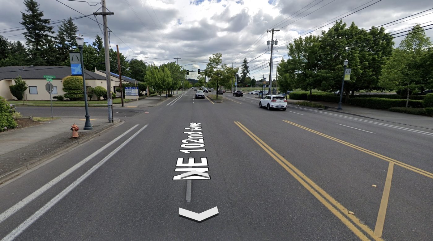 This section of 102nd, is a slightly less terrible version of 122nd. It’s another “high crash corridor,” car-centric stroad with five general travel lanes and paint-only bike lanes.