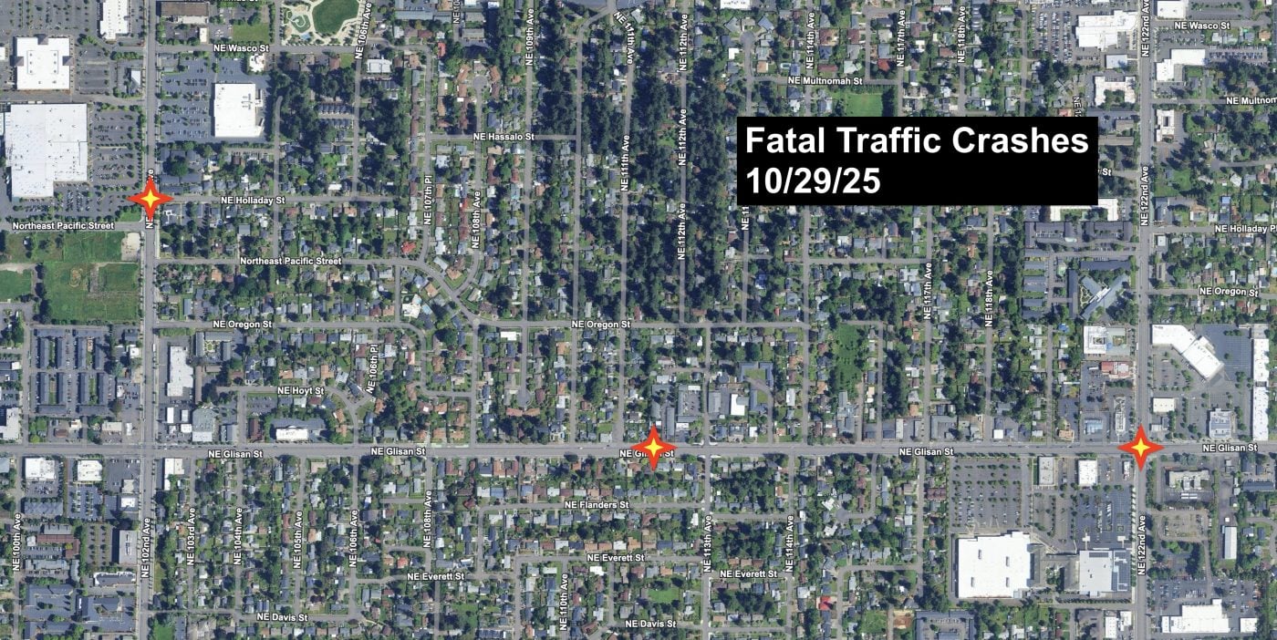 Three people were killed in traffic crashes in East Portland Wednesday night. All the crashes happened in the Hazelwood Neighborhood and were relatively close to each other in both time and location. I’m still trying to learn more details, but here’s what I know so far…
