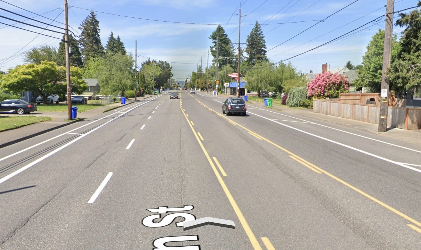 The location where the man in the wheelchair was killed last night is a classic, car-centric stroad where car use dominates and everyone outside of a car is at risk. There are five general travel lanes and buffered, paint-only bike lanes. It’s on PBOT’s “high crash corridor” list and has a 30 mph speed limit. PBOT has major plans for 122nd and has already completed some updates. In 2021 I shared a video overview of the conditions and how PBOT plans to address all the safety problems on the corridor.