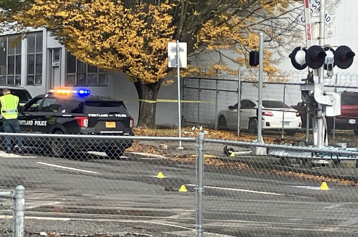 The deceased person’s body came to rest on the sidewalk located just north of the northernmost track, just beyond the Ford Building parking lot. According to photos that show the e-scooter and other investigative markings, it appears the collision might have originated at the eastern end of the crossing. Also clear in the photos is that the person was riding a Lime e-scooter that’s part of the City of Portland’s shared electric scooter system.