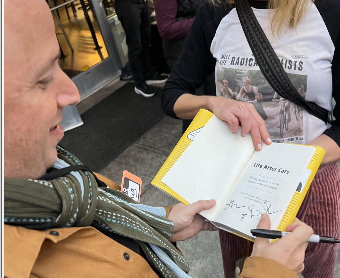 The conversation went great and I think you’ll enjoy it. Sarah earned several rousing ovations and Doug was his usually sharp and brilliant self. These two are carrying so much weight on their shoulders as high-ranking generals in the War on Cars, and they do it with what I think is just the right balance of activism and pragmatism. They’re what I like to think of as reasonable radicals.