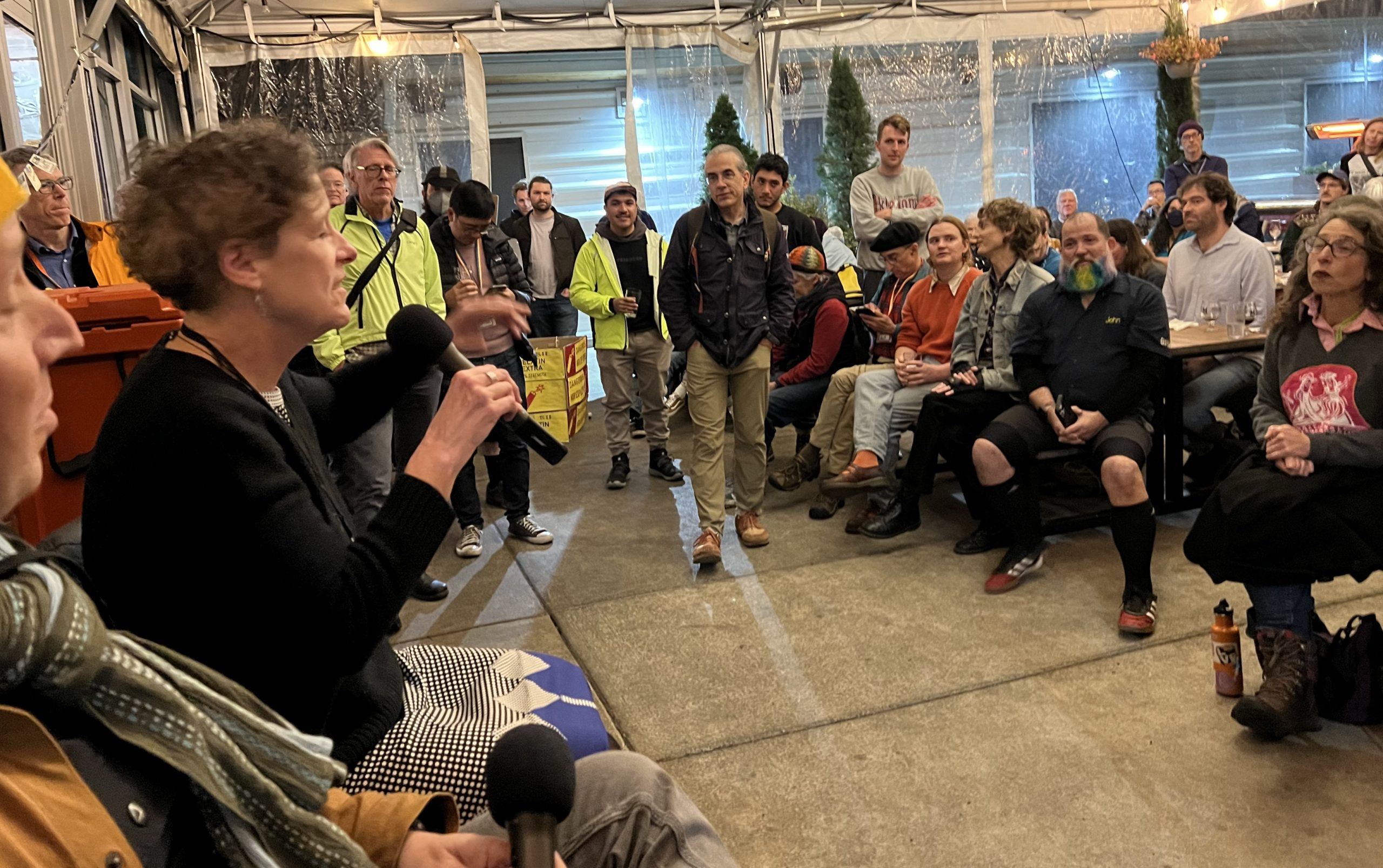 “You have to organize. And now more than ever I am grateful for being in this movement because, as fascism advances upon us and tries to shut down every source of joy and good that there is, we are already organized here. Everybody in this room knows people they can trust, knows people who understand the way that politics work. And I think we just need to double-down on organizing, frankly. And to hear people get up here and say, ‘Come meet me to talk about this street. Come meet me to talk about this event,’ that to me is exactly what we should be doing and we just have to keep doing it.