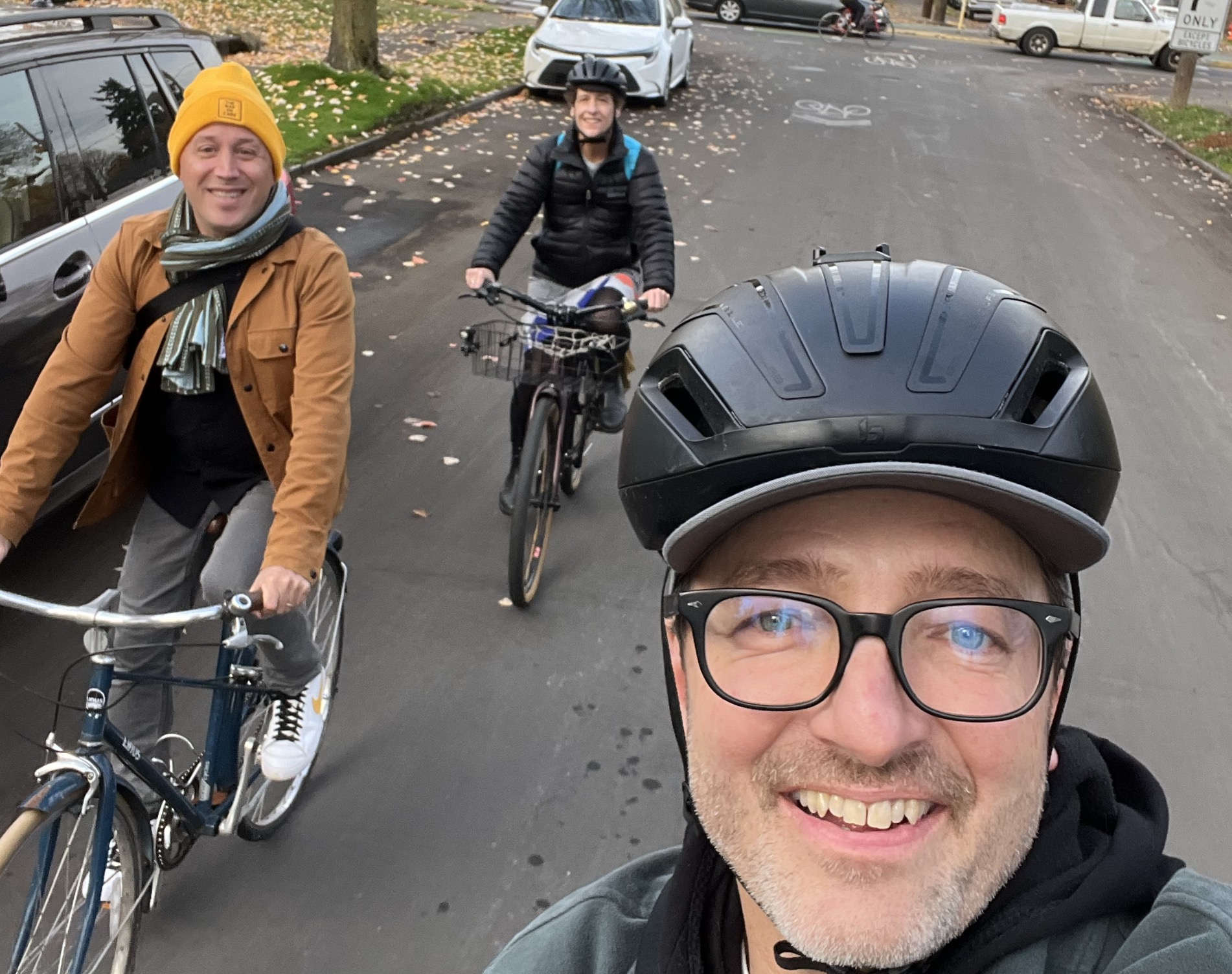 “I love Portland’s bike culture. New York City doesn’t really have like a bike culture in the way that Portland and a few other cities do. And so for example, like the Naked Bicycle Ride and the fact that that existed and then ICE is here and the National Guard is gonna come and like the Naked Bike Ride happens in a flash [everyone laughed at the unintended pun!]… that was a great thing to see. It’s one of those things that’s like maybe easy for outsiders to make fun of — but then, like, it was effective.