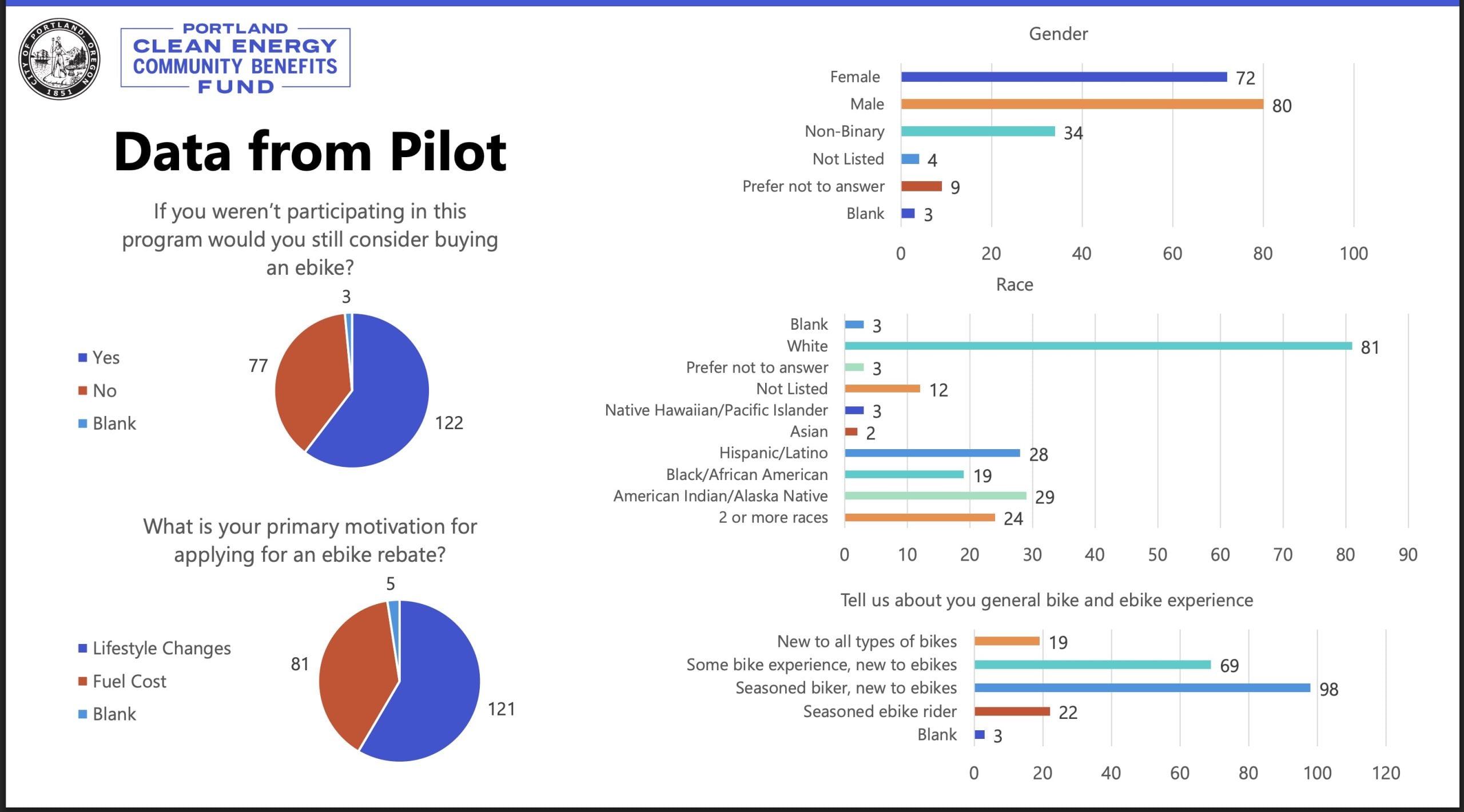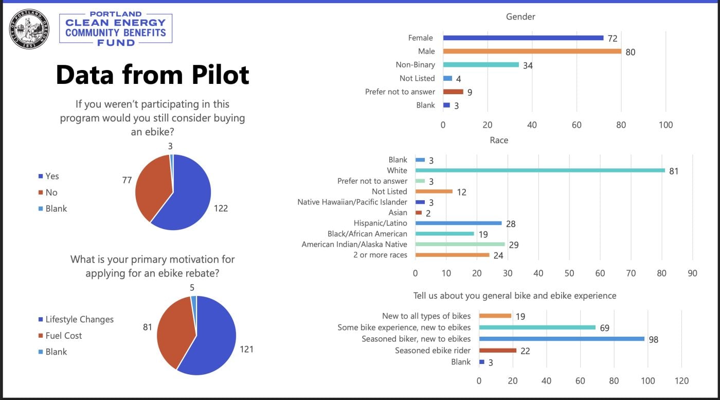 PCEF Transportation Decarbonization Program Manager Seetha Ream-Rao said beyond the clear success, some of the lessons learned include: more outreach to “key demographics,” more education on choosing e-bikes, and it’s important for participants to test ride bikes before making a decision.