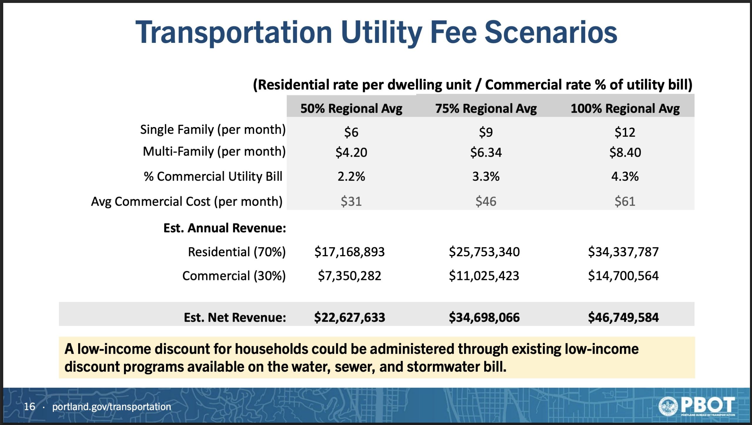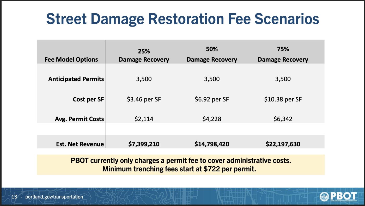 PBOT presented a range of “damage recovery fees” from 25% to 75%. Depending on what they settled on, this fee could raise between $7 million to $22 million per year.