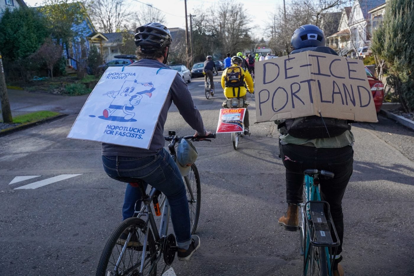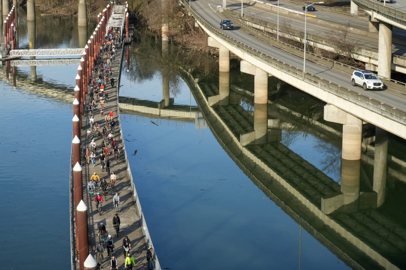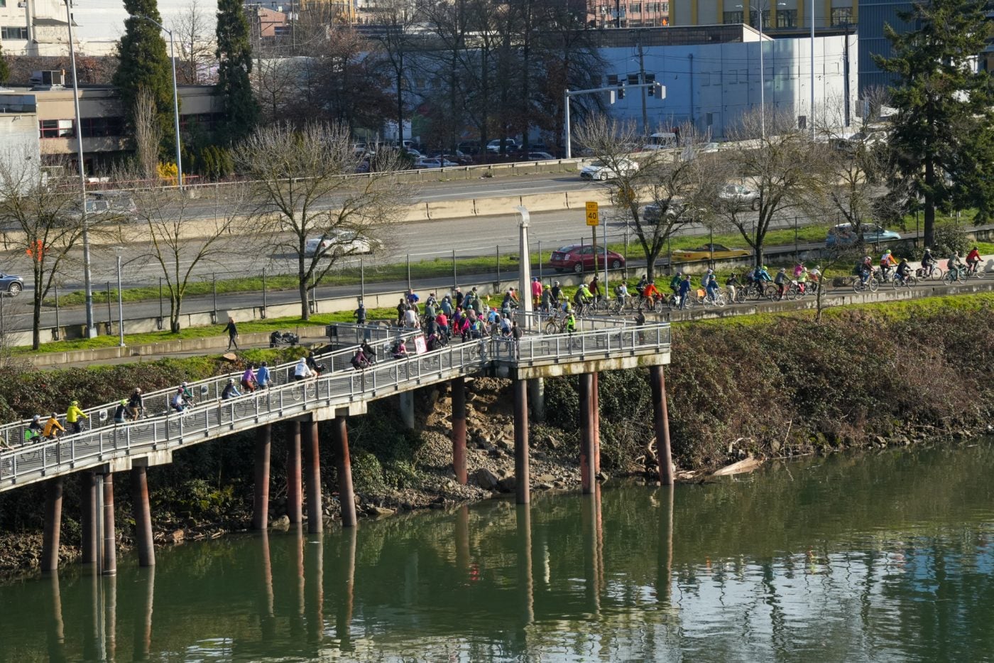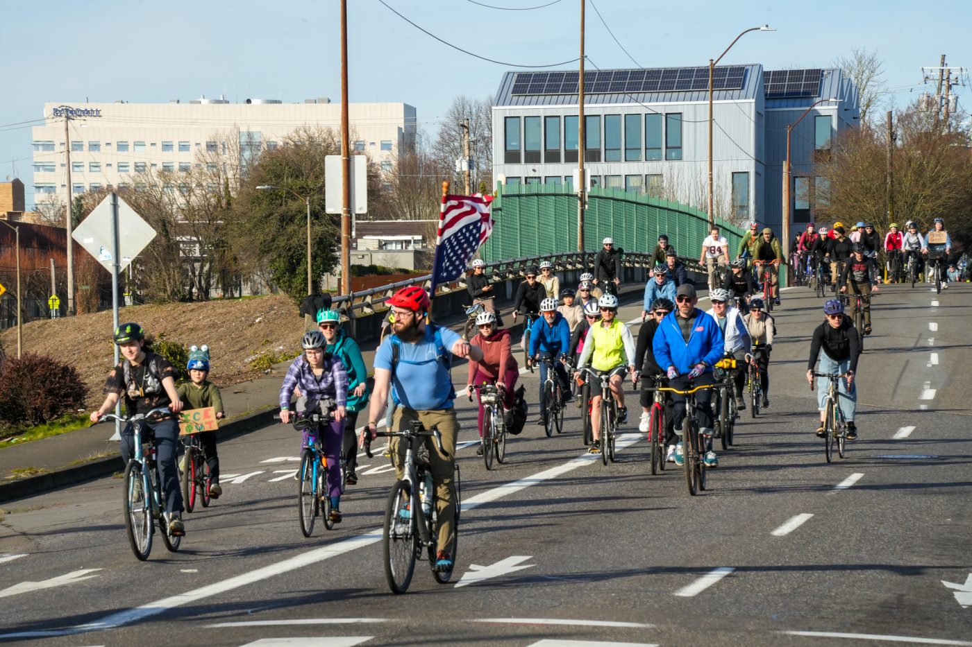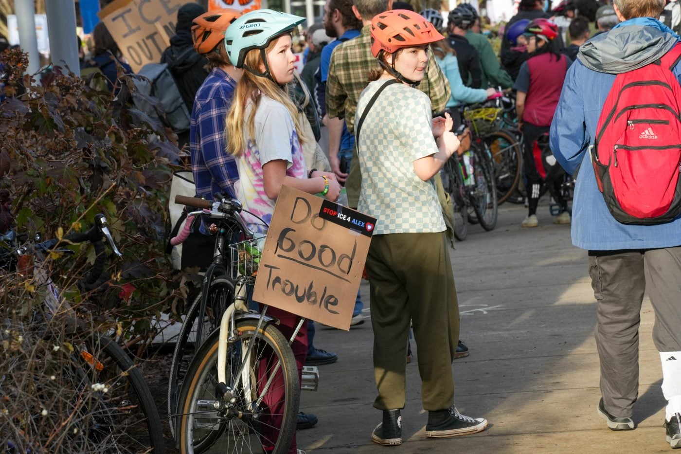 Thousands of people turned out on bikes to honor Alex Pretti and all victims of ICE and Trump’s fascist regime. At one point the line of people stretched from the Moda Center along the Eastbank Esplanade all the way to the Tillikum Bridge. The ride went from Irving Park to South Waterfront where a rally was being held.