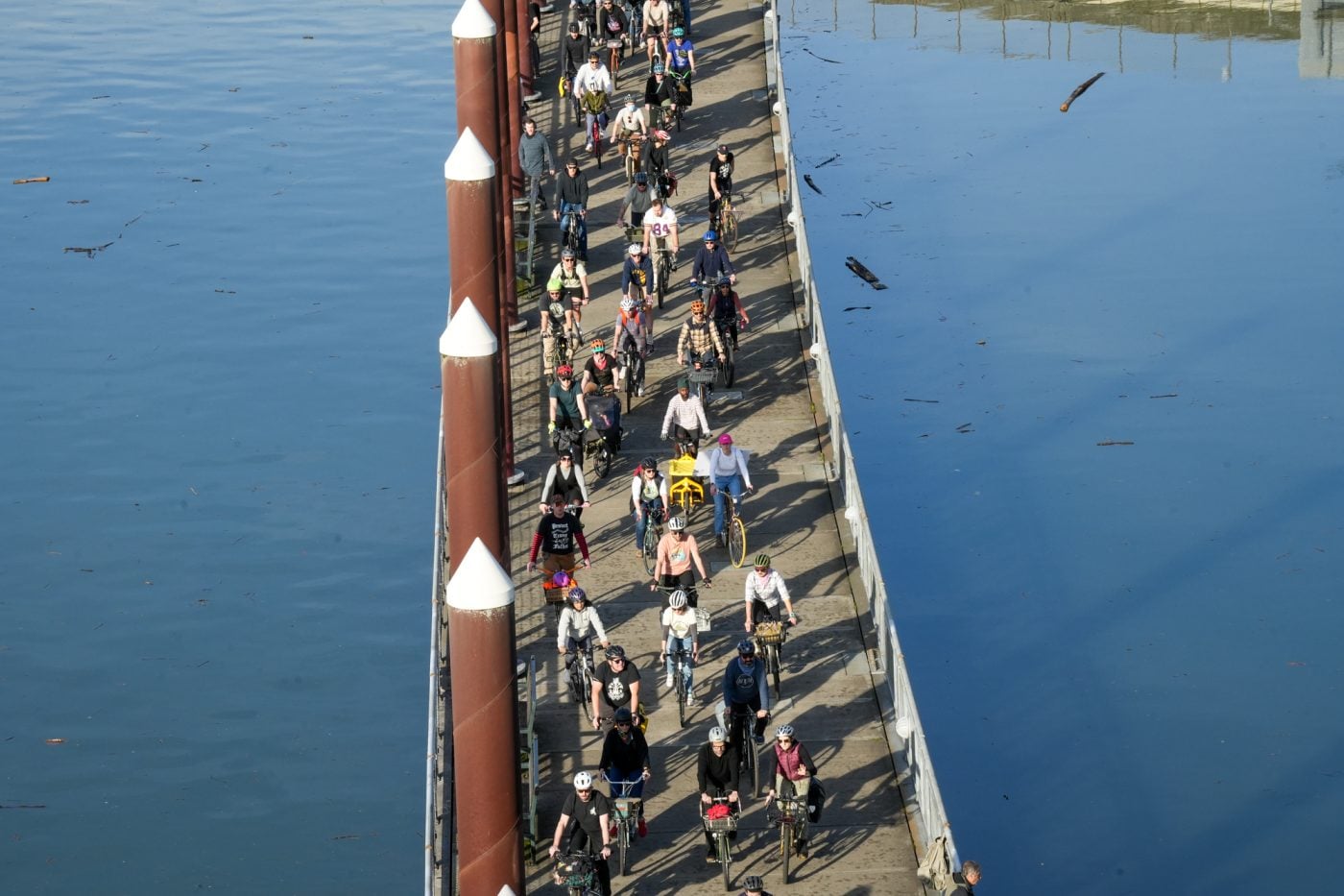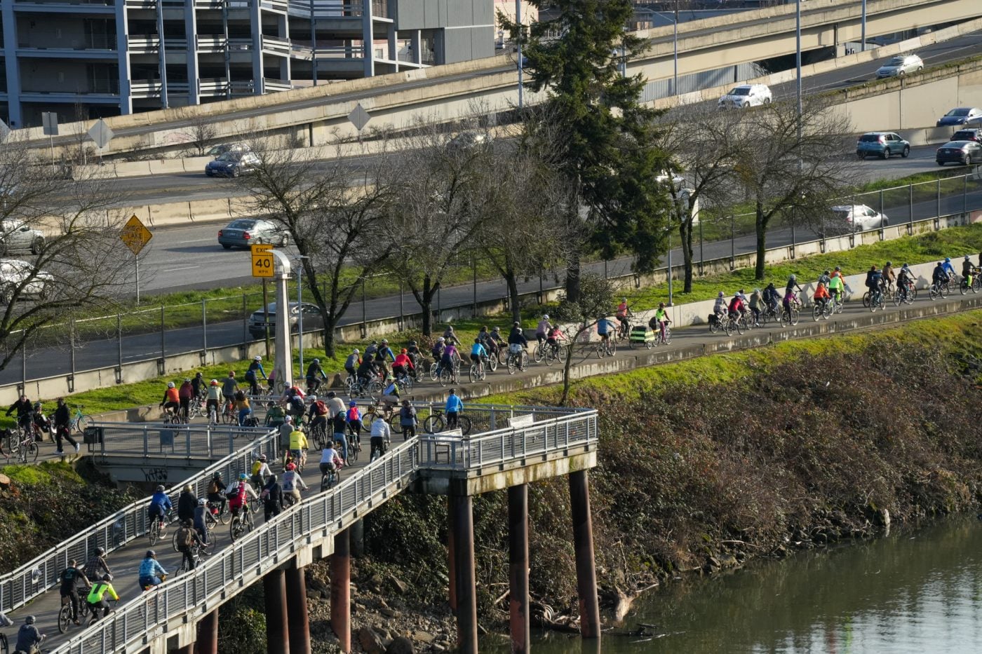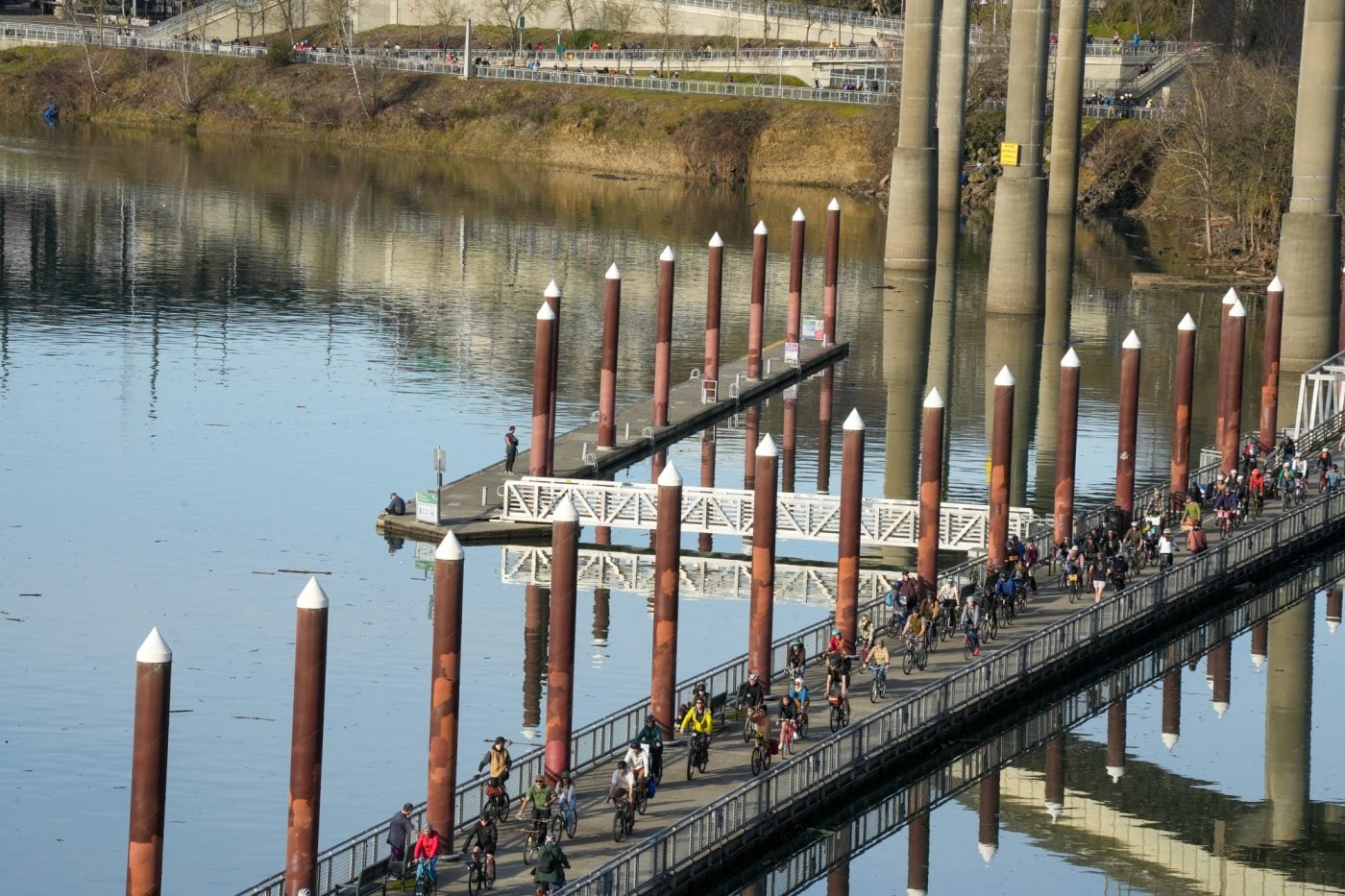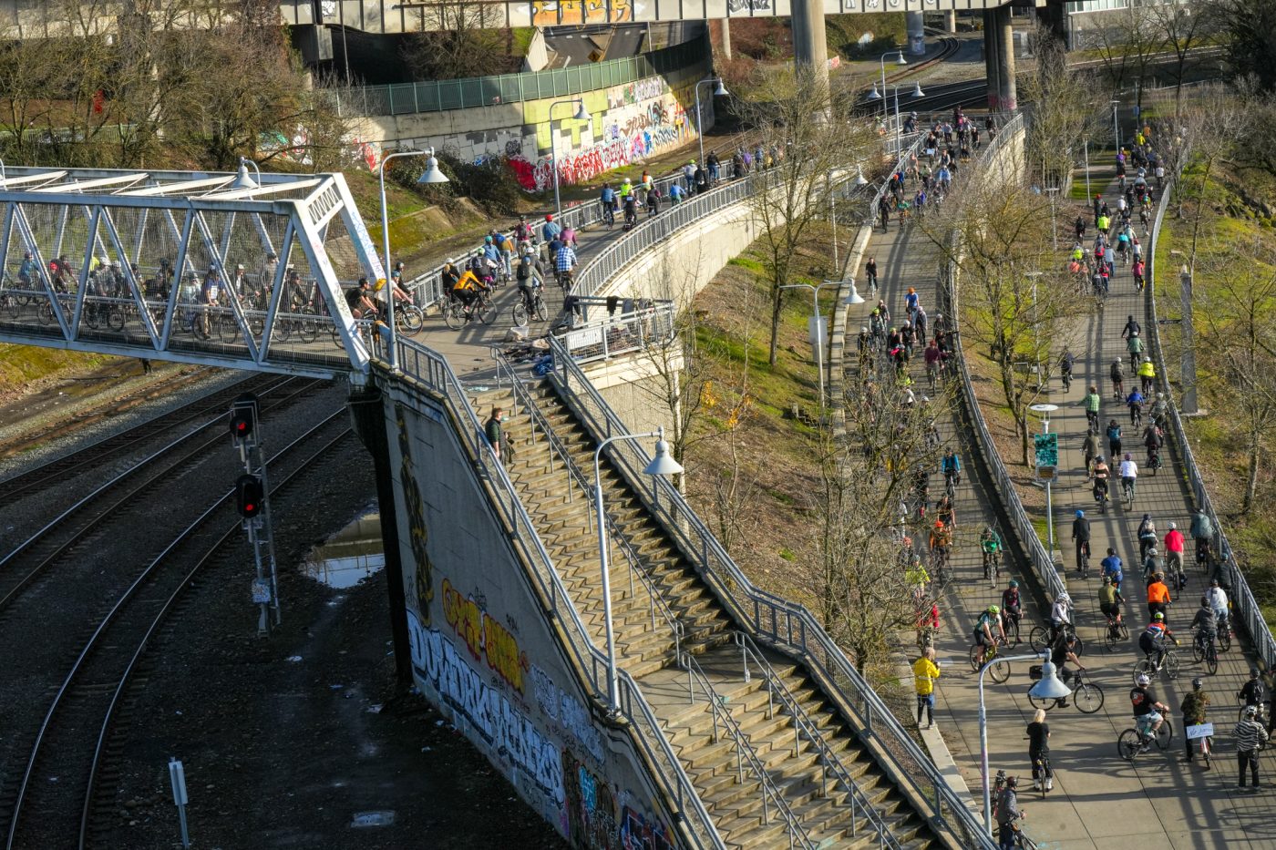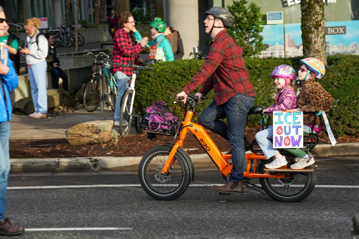Thousands of people turned out on bikes to honor Alex Pretti and all victims of ICE and Trump’s fascist regime. At one point the line of people stretched from the Moda Center along the Eastbank Esplanade all the way to the Tillikum Bridge. The ride went from Irving Park to South Waterfront where a rally was being held.