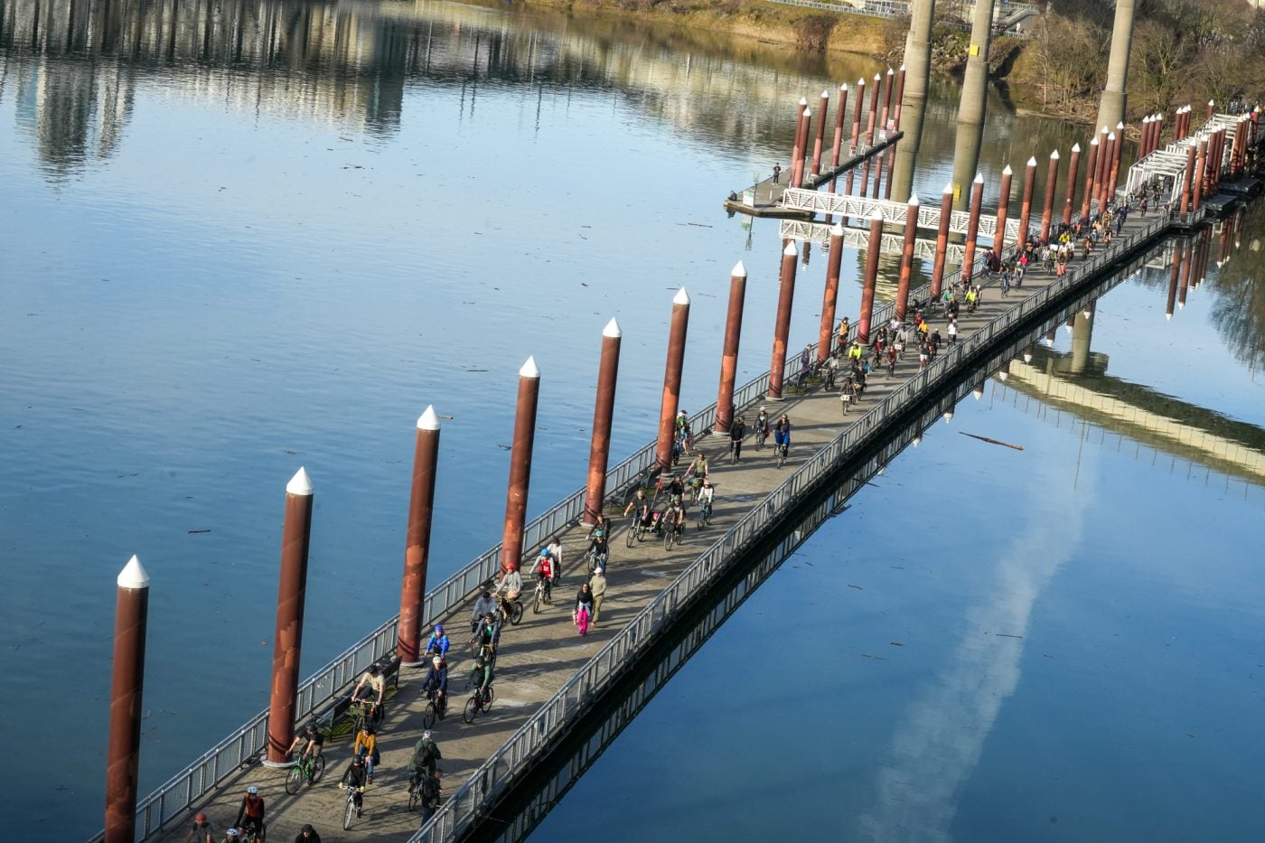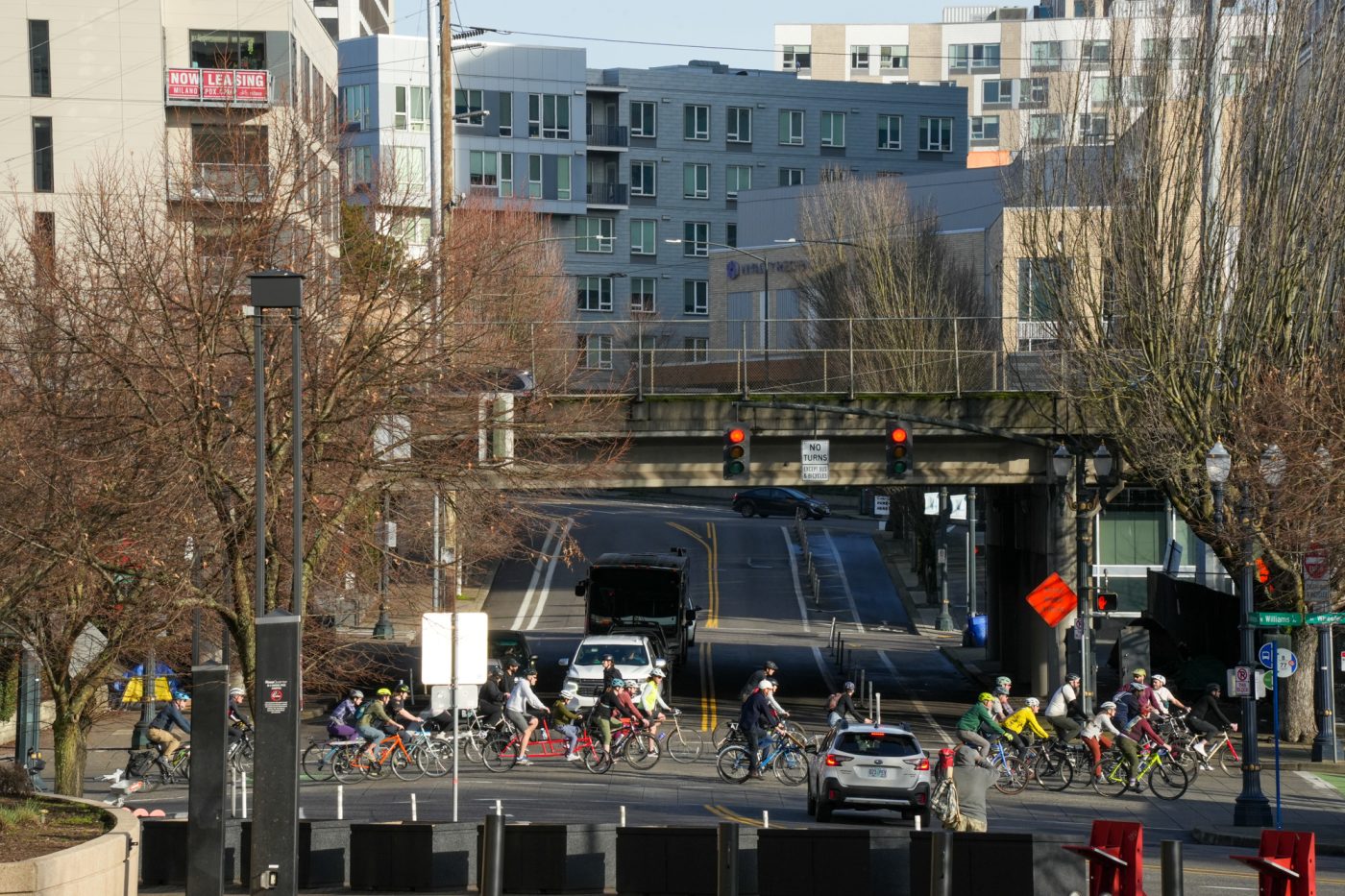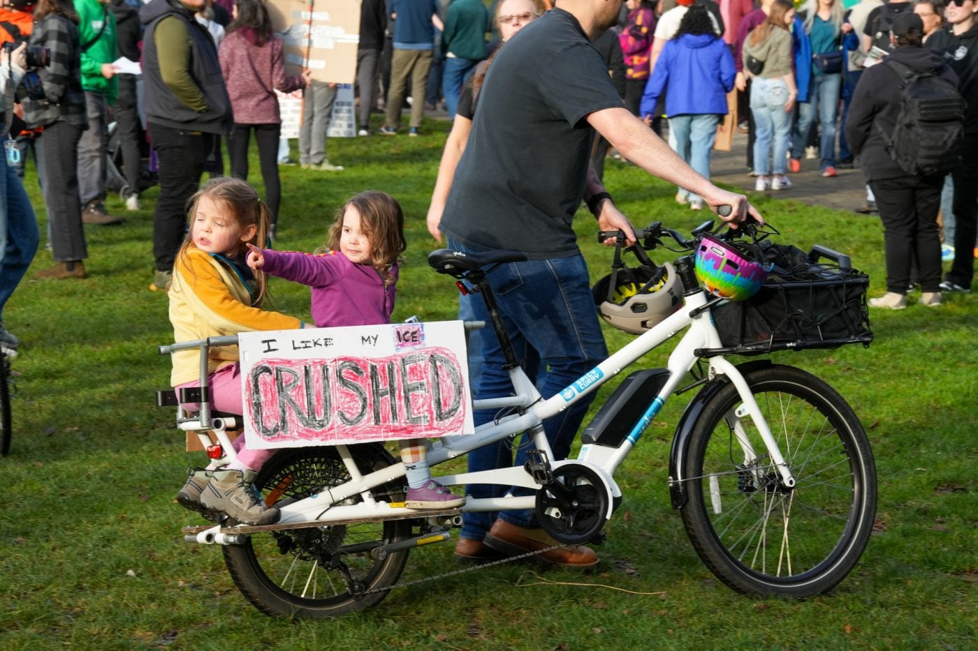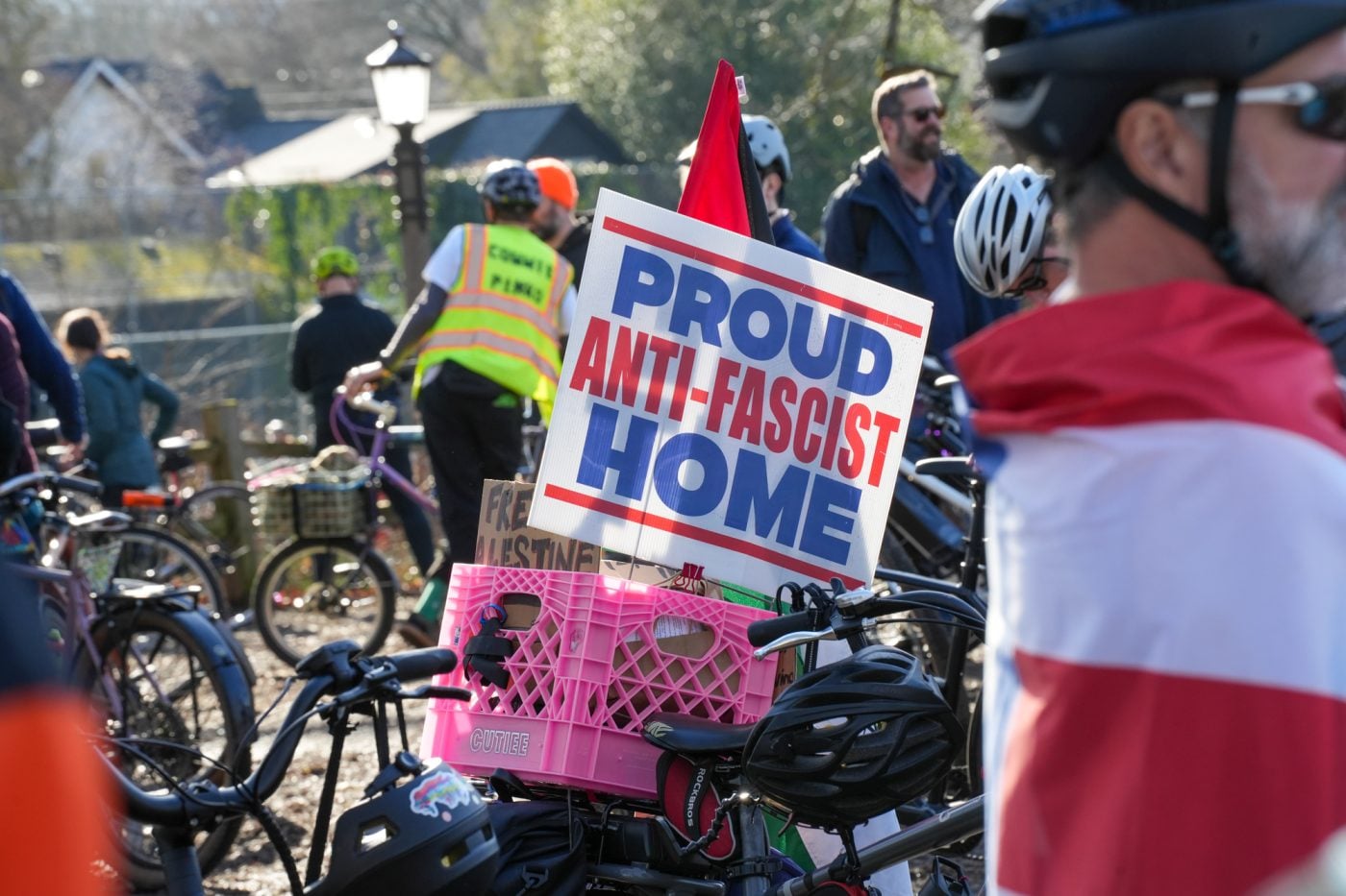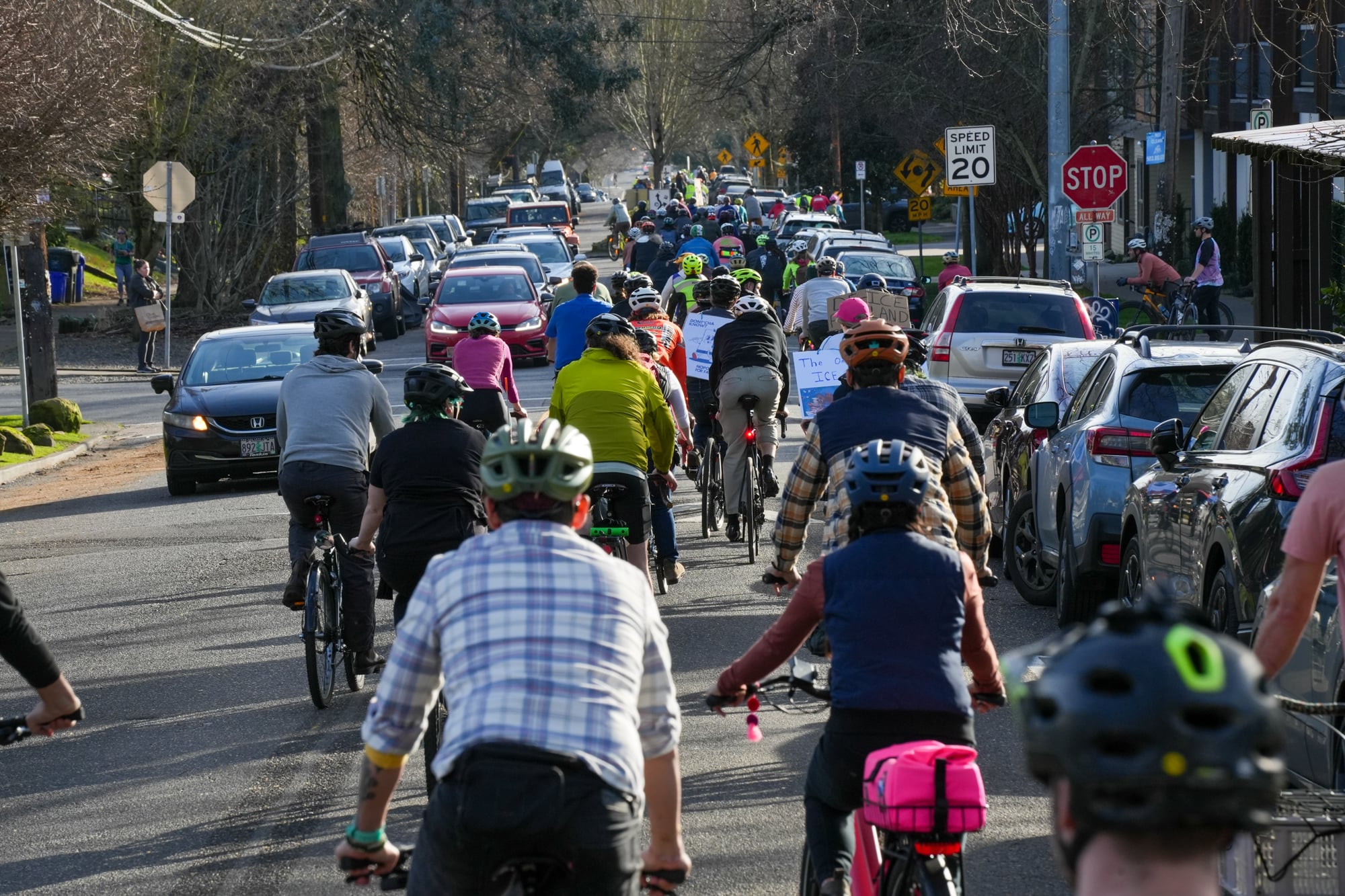 Thousands of people turned out on bikes to honor Alex Pretti and all victims of ICE and Trump’s fascist regime. At one point the line of people stretched from the Moda Center along the Eastbank Esplanade all the way to the Tillikum Bridge. The ride went from Irving Park to South Waterfront where a rally was being held.