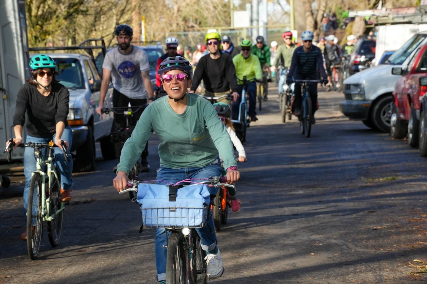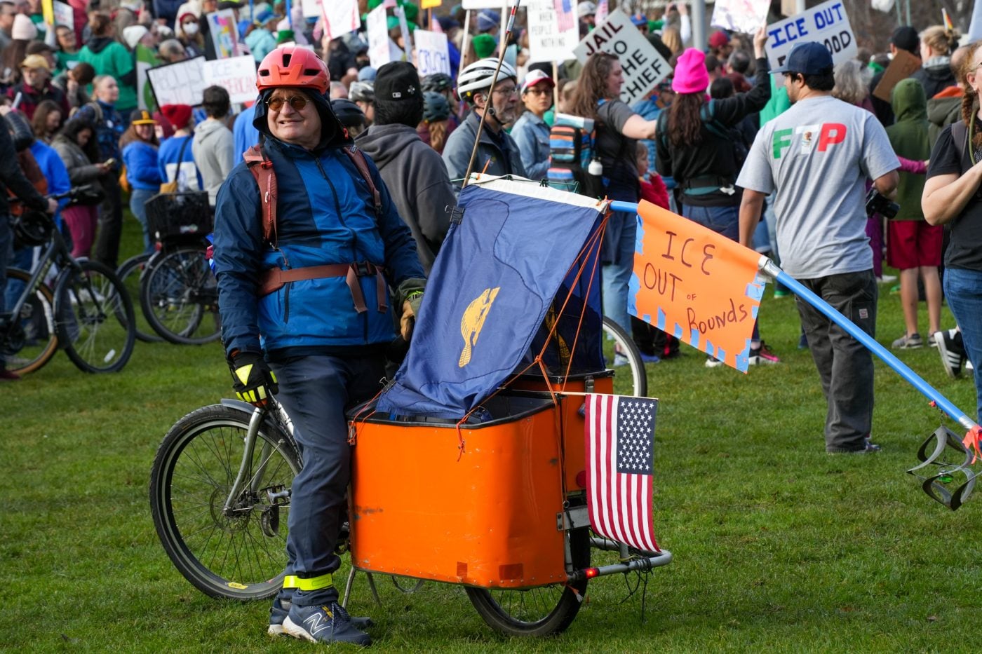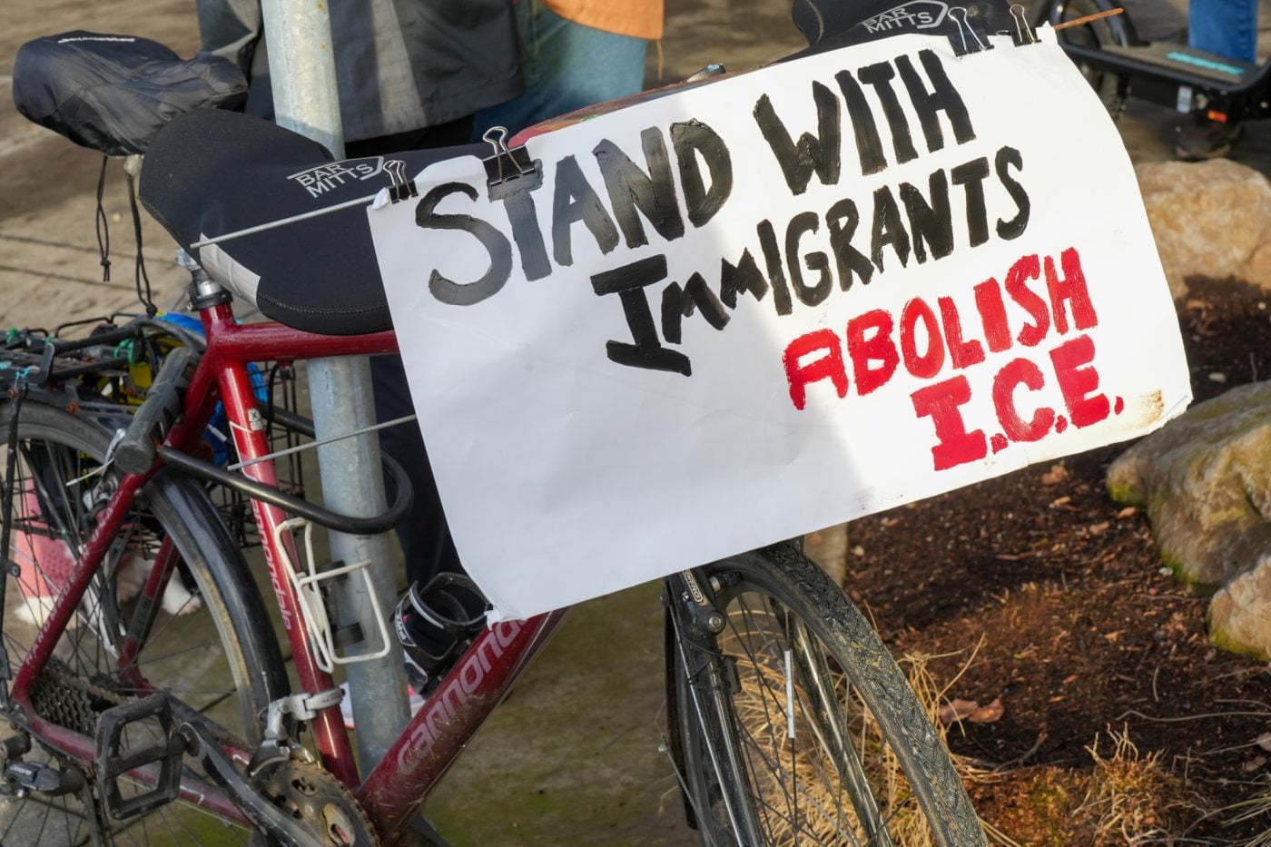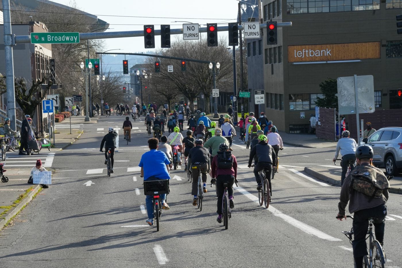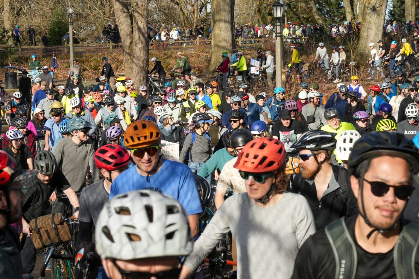 Thousands of people turned out on bikes to honor Alex Pretti and all victims of ICE and Trump’s fascist regime. At one point the line of people stretched from the Moda Center along the Eastbank Esplanade all the way to the Tillikum Bridge. The ride went from Irving Park to South Waterfront where a rally was being held.