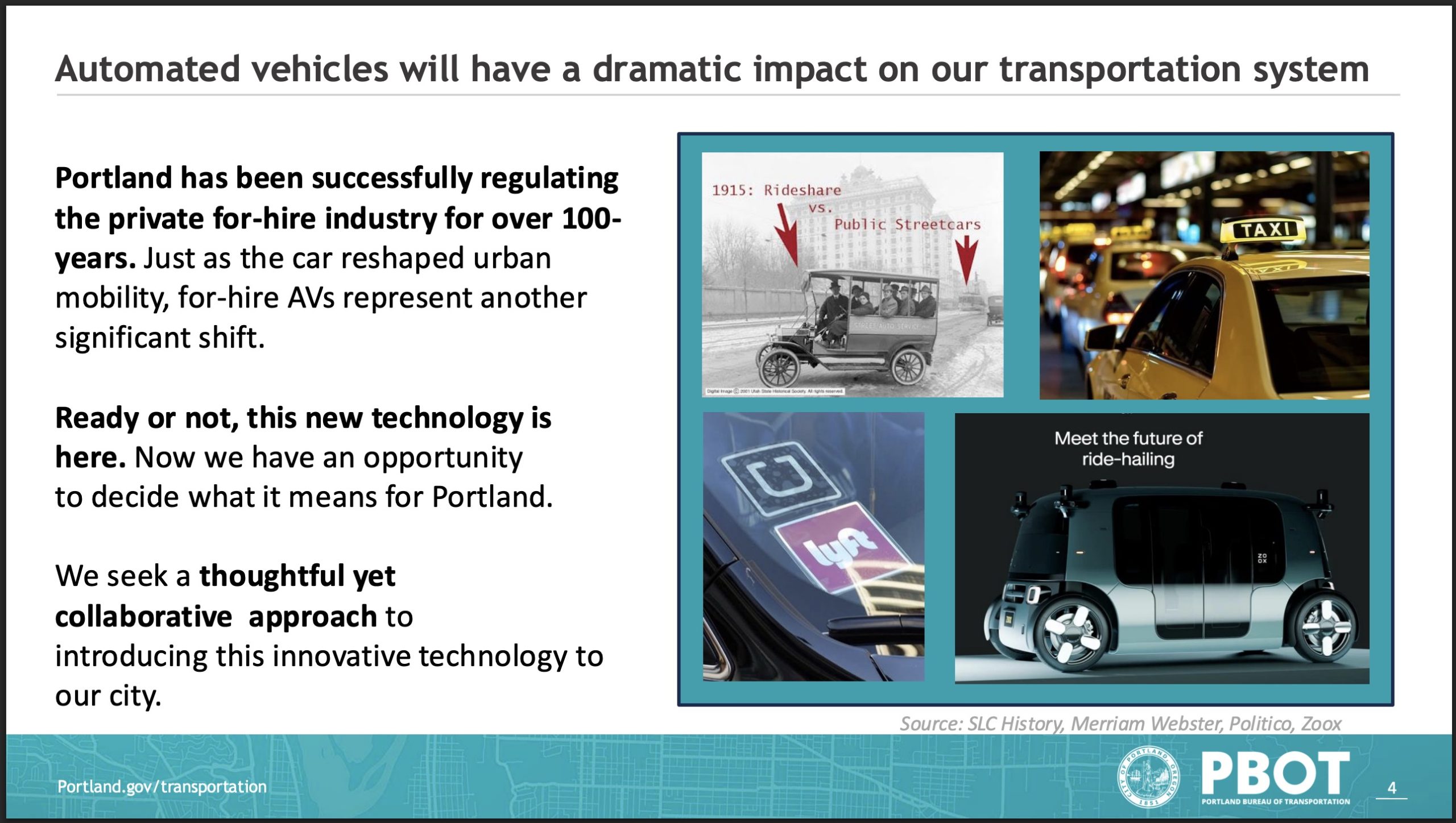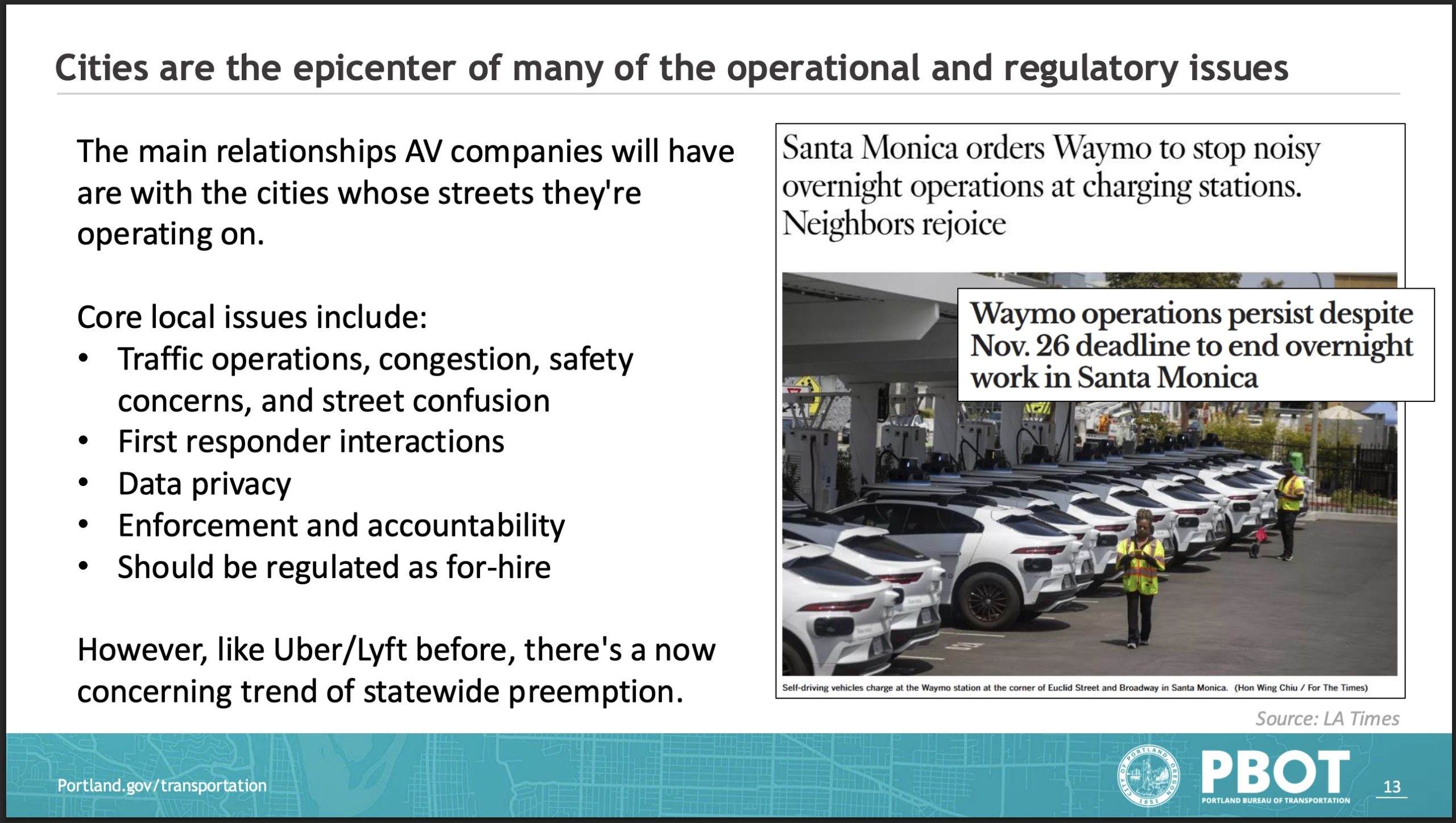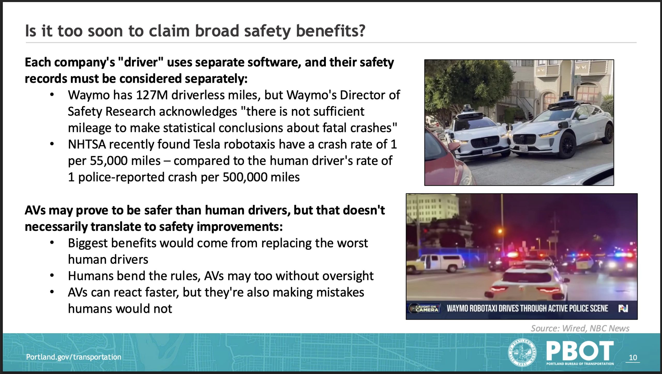 that crossed my mind as well. Could be a play to start the conversation this session to increase its chances next session. I just hope PBOT and other electeds are aware that Waymo is forcing this conversation. I seriously doubt any constituents or nonprofits groups organized for this. Feels very top down.