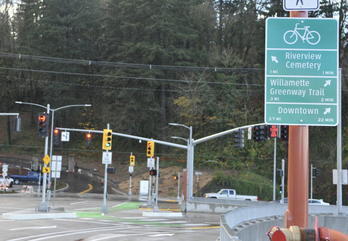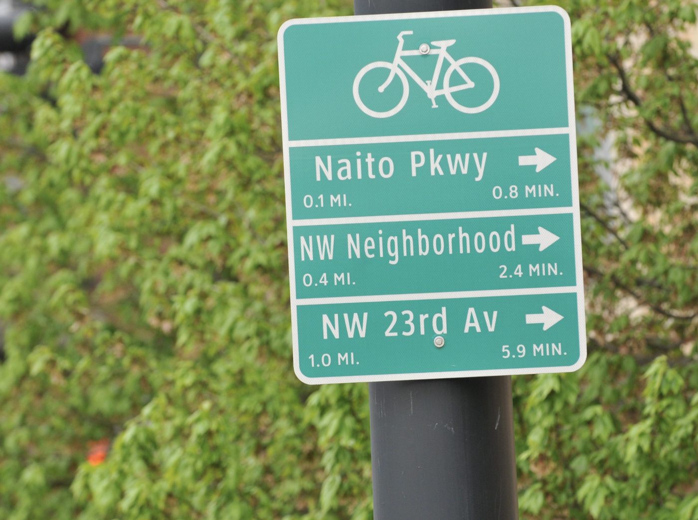 We at the Bicycle Advisory Committee in Beaverton have been working to bring similar wayfinding to our city. A lot of the work has been done, but it has stalled in engineering, and finding the money to pay for the signs may be a hold-up. One thing I like about the Portland signs is the time estimate, but as we went through iterations of designs for the signs here, everyone seems to have agreed that it is not very inclusive of different riding styles, and design guidelines for wayfinding from the usual agencies have all said not to have the time estimate going forward. I get it and ultimately agree from an accessibility standpoint.