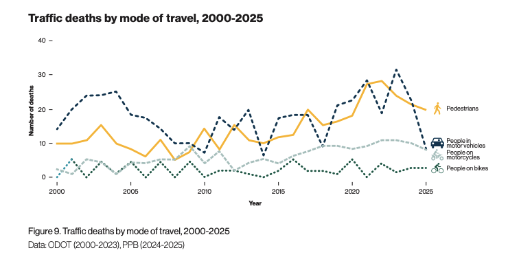 Like, I understand why PBOT and politicians would like to triumph this as progress towards vision zero but it is a bit disappointing to see BikePortland echoing that propaganda when in reality what we are seeing is more like a return to the (still unacceptable!) pre-pandemic baseline.