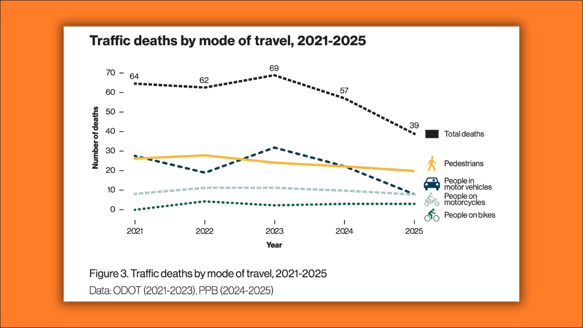 As to how people died on our streets in 2025, speeding is still the most prominent factor with 41% (16 people) of traffic deaths involving speeding or excessive speeds. To learn more, check out the 2025 Deadly Traffic Crash Report or read more on PBOT’s website.