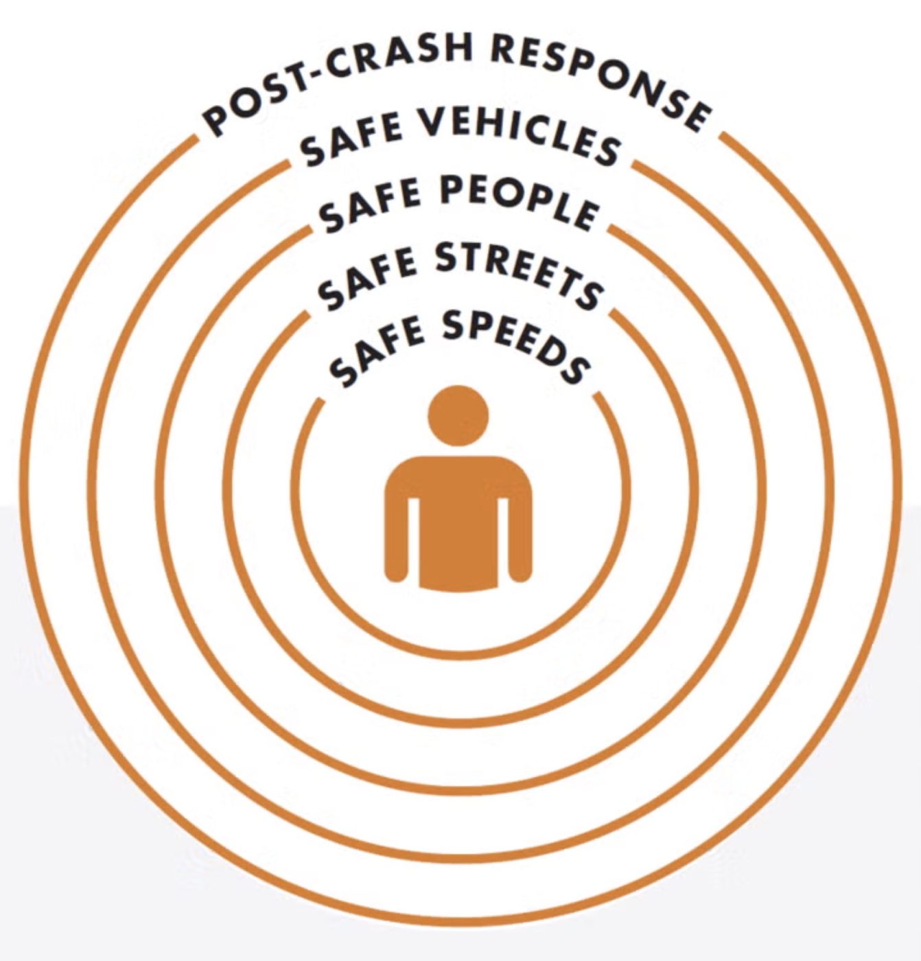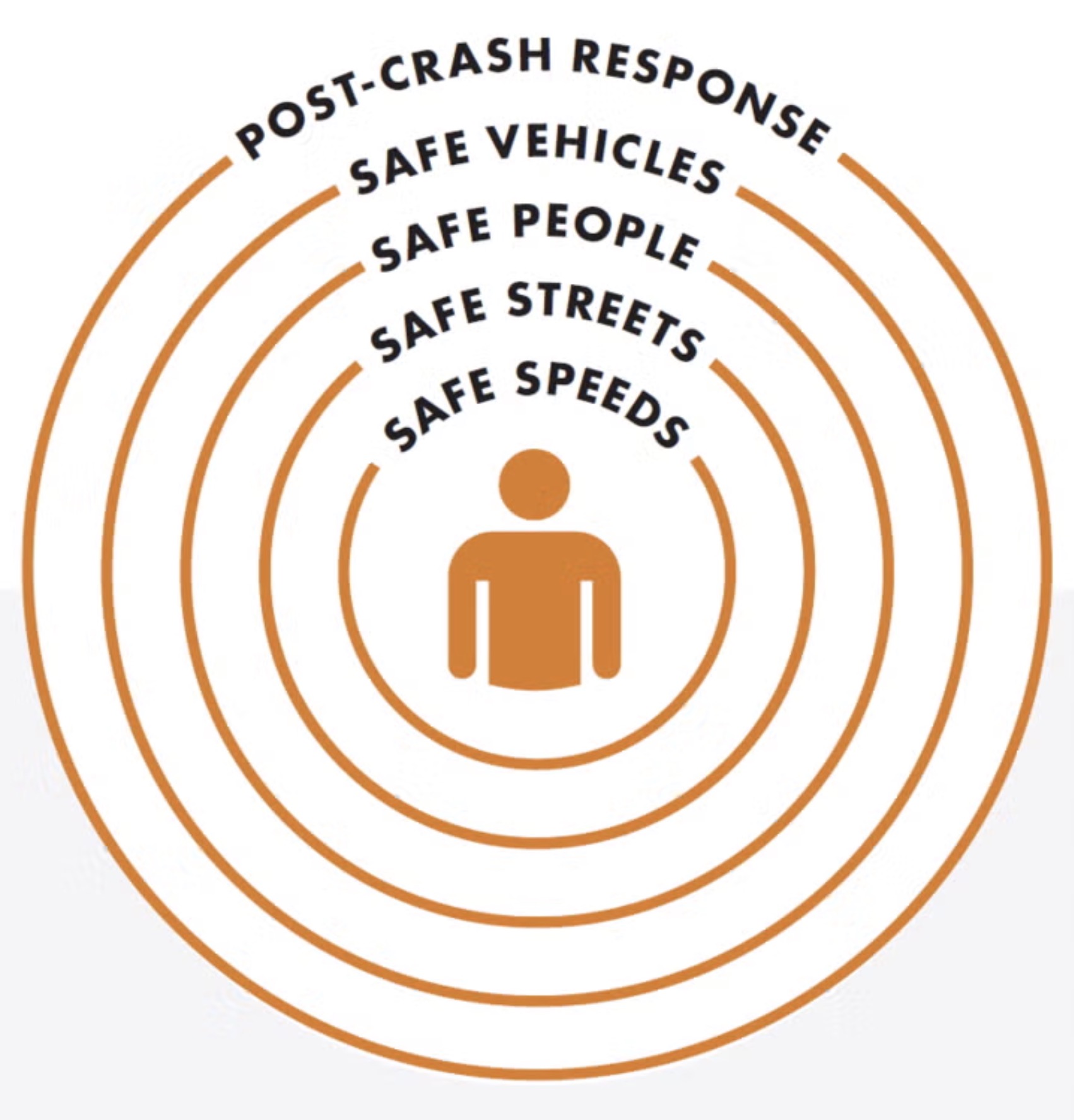 The adoption of the Safe Systems approach by the City of Portland represented an important paradigm shift and step forward from the more top-down “Three Es” of Education, Engineering and Enforcement. Safe Systems incorporates public health principles which formally acknowledge that humans make mistakes and aims to reduce the consequences of human error by ensuring multiple systems — people, cars, speeds, streets, and post-crash care — are safe and work to reinforce each other. This ensures that if one system fails, other systems will compensate.