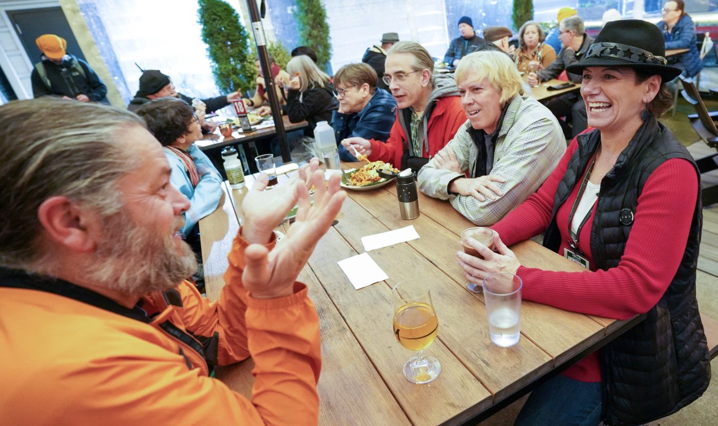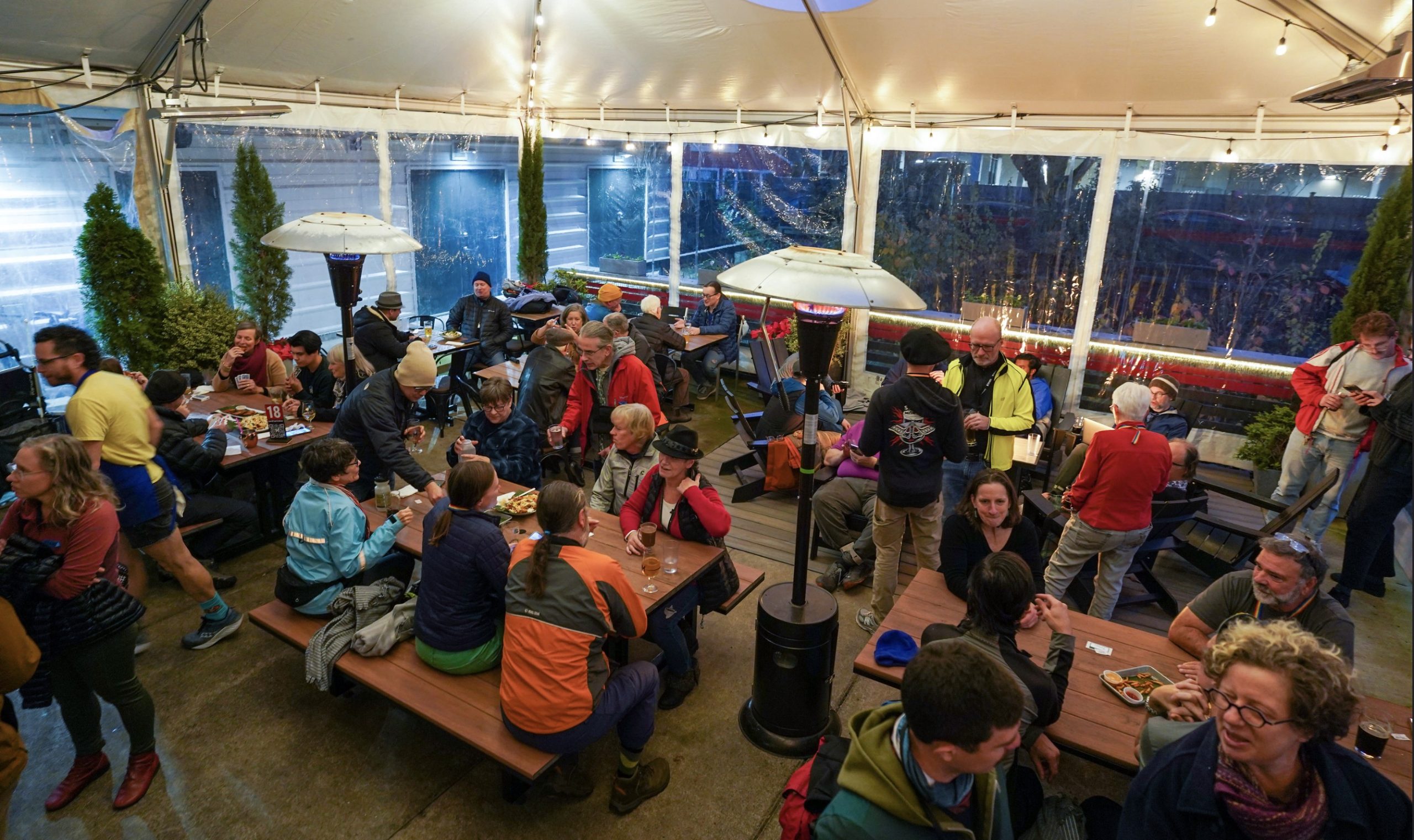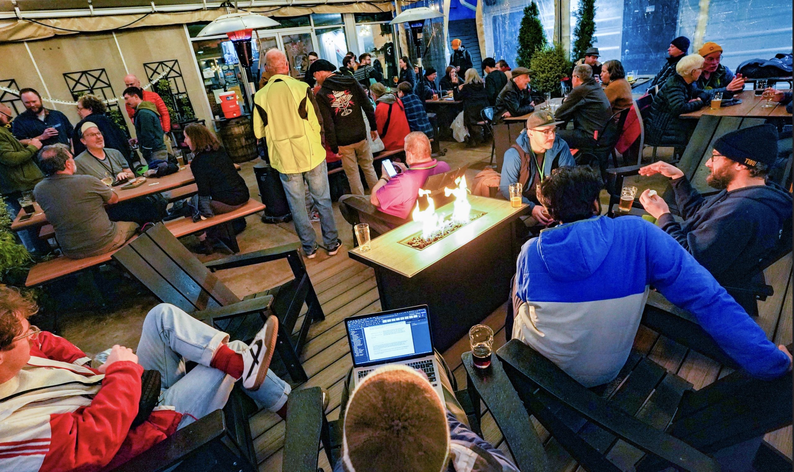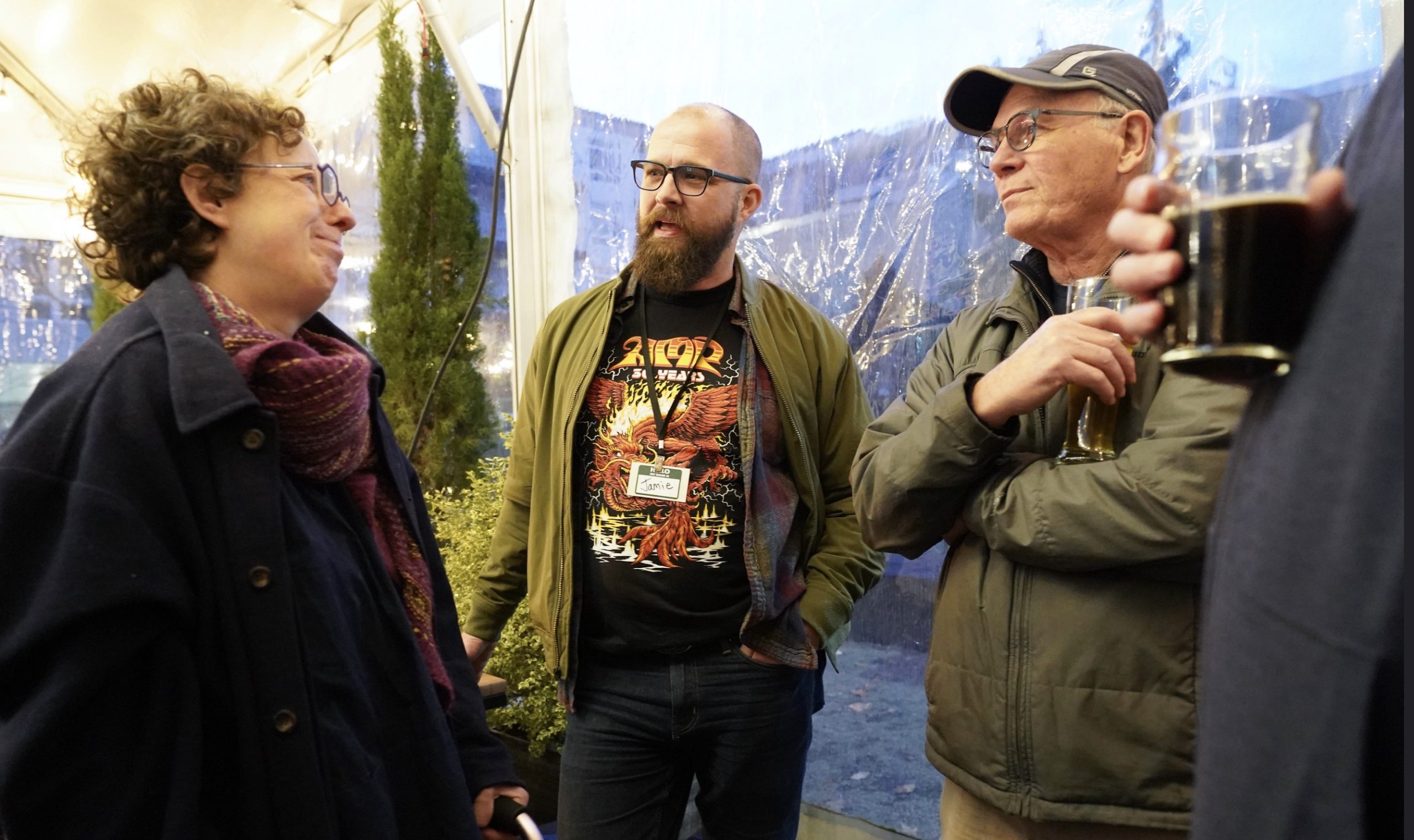 We also strongly encouraged name tags. We have special “Regulars Club” loyalty cards (above) that have a name tag on the back. Please bring it each week. If you need one marked off (en route to a free drink on your 9th visit!) or don’t have a card yet, please come find me (Jonathan Maus, goofy dude with a BikePortland hat) or other specially designated Happy Hour Ambassador.