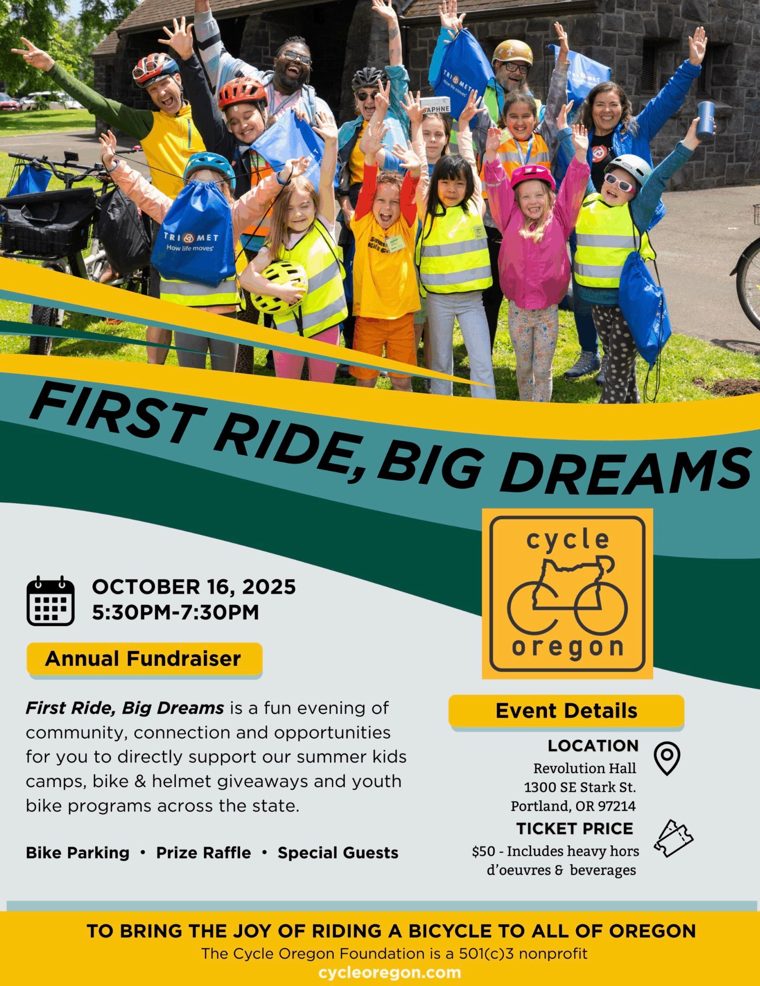 “Help us teach more kids to ride by attending the inaugural First Ride, Big Dreams Fundraiser.”